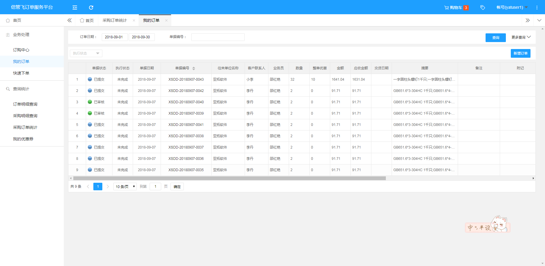 信管飛訂單服務平臺是亞拓軟件推出的一款在線訂單平臺,為企業量身打造,以訂單管理為核心,實現自助下單、訂單發貨跟蹤、 訂單統計、往來對賬、營銷活動推送、熱賣商品推薦等。