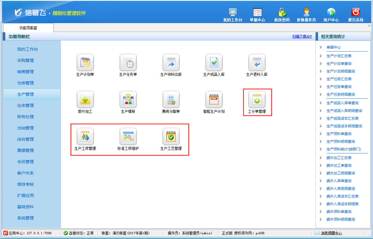 生產(chǎn)工序管理功能主要包括:標準工序維護、生產(chǎn)工藝管理、工令單管理、生產(chǎn)工序管理。
